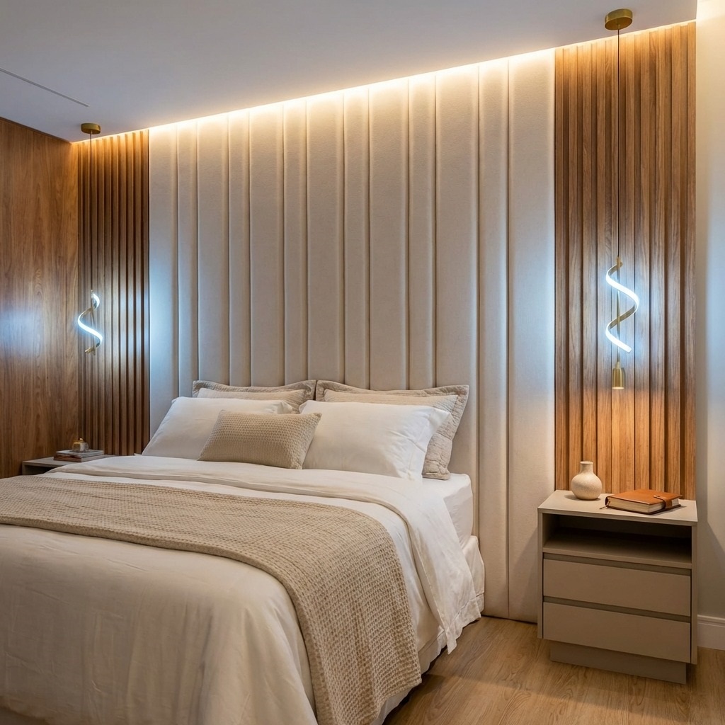 Cabeceira com apliques verticais sob medida